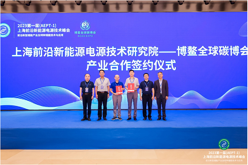 在开幕式上,上海前沿新能源电源技术研究院与博鳌全球碳博会共同签订了产业合作协议,助力国家绿色新能源产业发展,实现资源共享和优势互补,提升整体服务水平和综合实力。