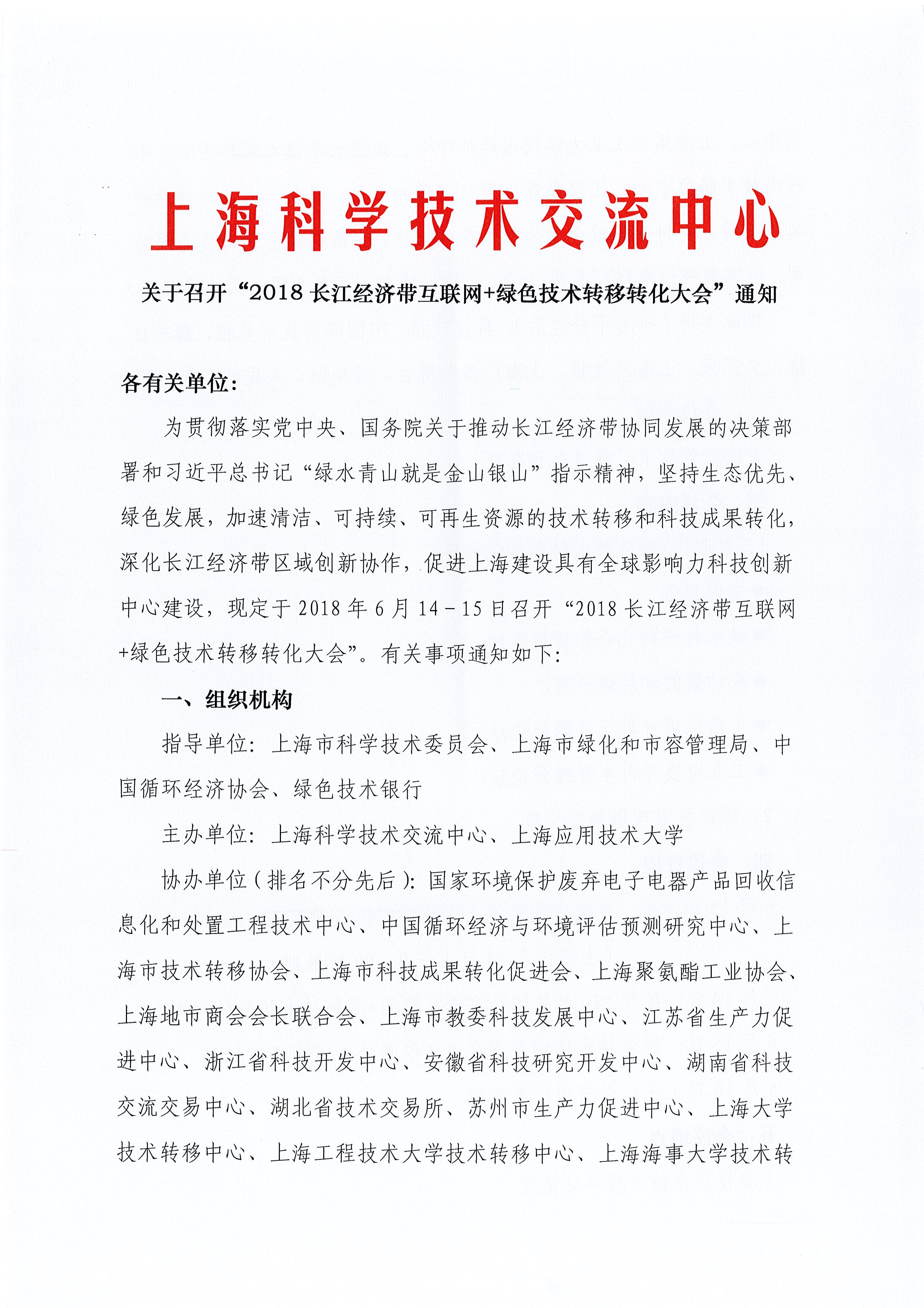 关于召开2017长江经济带互联网+技术转移转化大会的通知
