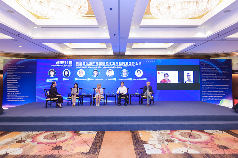 上海交通大学碳中和发展研究院副院长谢晓敏、联合国工业发展组织上海全球科技创新中心执行主任刘晶、菲律宾太阳能与储能联盟主席Tetchi Capellan、泰国国家能源技术中心可再生能源与能效研究主任Nuwong Chollacoop、中国海洋工程装备技术发展有限公司CCS/CCUS团队负责人徐绍良、阿联酋技术创新研究所高级主任Mauro Pravettoni、印度尼西亚国家科技部暨国家研究与创新署气候与大气科学研究中心主任Albertus Sulaiman等中外低碳领域专家线上线下开展对话,围绕低碳技术的全球合作趋势,分享了低碳领域新的技术路线和解决方案,并探讨建立国际合作框架下的低碳技术共享与成果转化应用模式。各方达成共识,将建立更紧密的低碳技术的国际合作机制,共同推动联合研究与成果示范应用。