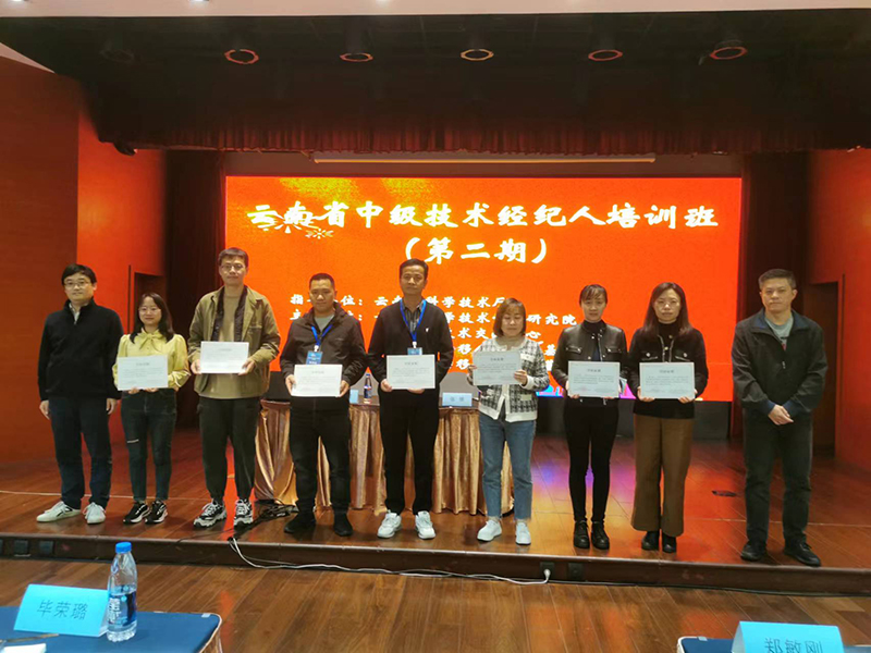 “中心”成果转化处处长成晓建、云南省科学技术情报研究院技术转移中心主任张维出席21日下午的结业仪式并向参训学员代表颁发学习证书。