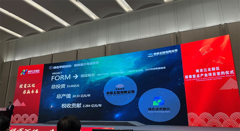 新年伊始,绿色技术银行加快推进“技术+金融”重点项目在长三角落地实施。1月31日下午,总投资33亿元的“年产38万吨绿色甲醇项目”在南京江北新区签约,作为重点产业项目落地新材料产业园。上海科工联科创科技服务中心(绿色技术银行管理中心)主任王震、绿技行(上海)科技发展有限公司总经理朱军浩、中国化学赛鼎工程有限公司总经理周恩利出席。南京市市长陈之常,南京市和江北新区领导杨学鹏、邓智毅、金卫东、黄辉、吴勇强等见证签约。
