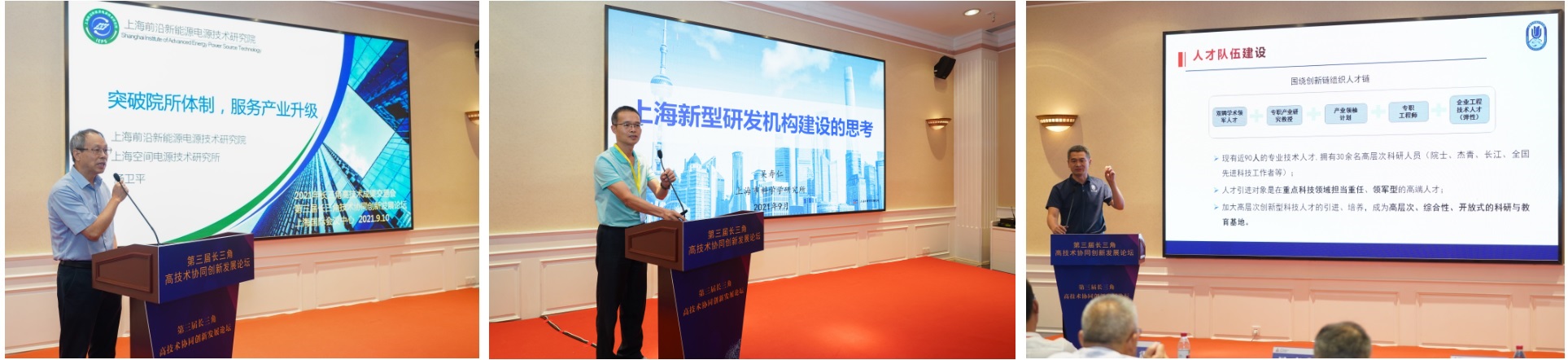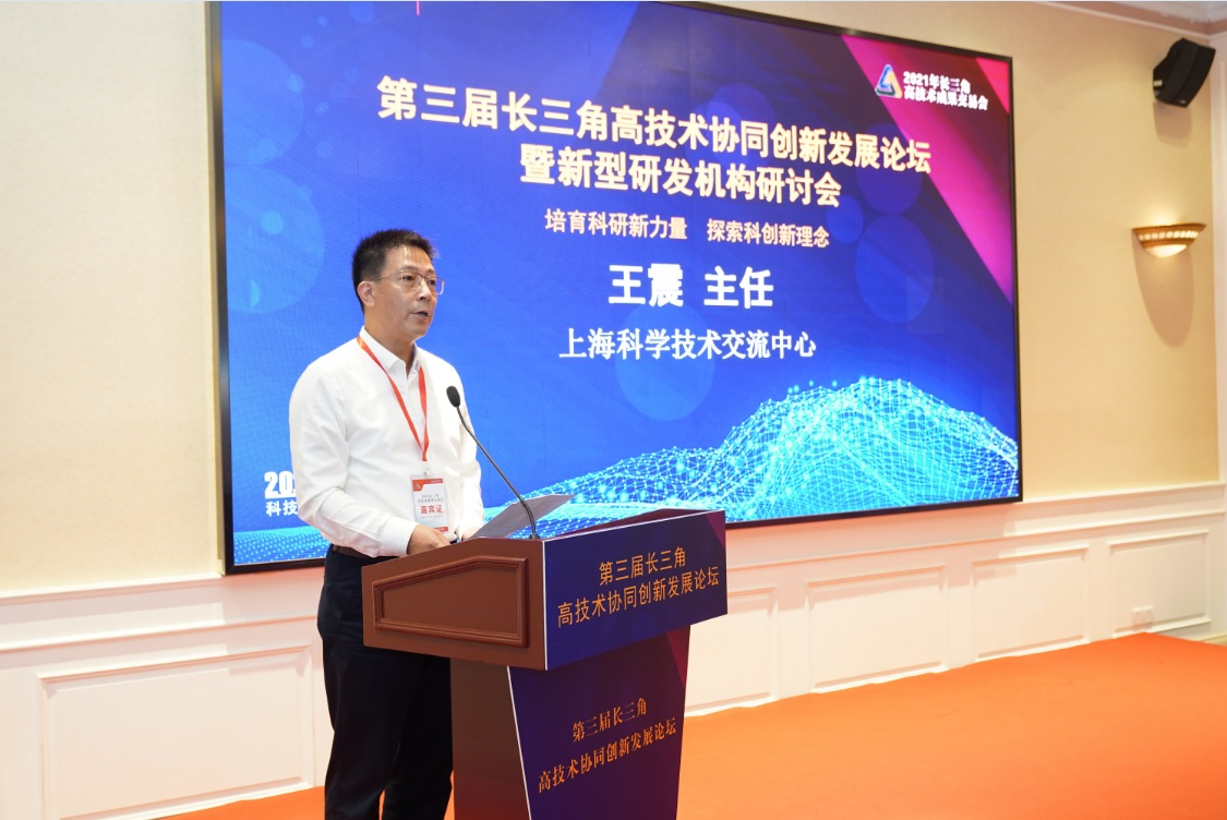 9月10日,由上海市科学技术委员会主办,上海科工联科创科技服务中心、江苏省生产力促进中心及上海长三角商业创新研究院共同承办的以“培育科研新力量,探索科创新理念”为主题的第三届长三角高技术协同创新发展论坛在上海国际会议中心隆重举行。 “中心”主任王震出席论坛并致辞,上海长三角商业创新研究院秘书长兼常务副院长蒋斌,长三角流通经济创新研究中心主任、圆通速递副总裁相峰,长三角数字联盟专家委委员、杭州电子科技大学浙江省信息化发展研究院执行院长辛金国等分别作为特邀嘉宾出席论坛并分享创新智慧。论坛由“中心”副主任刘光顺主持。