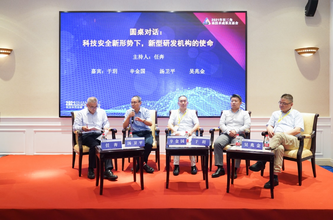 当下,新型研发机构已被视为顺应科技革命和产业变革的产物,在粘合“科技”与“经济”方面发挥积极作用,是双向链接科研和产业的天然平台载体和组织形式。由此,辛金国院长和上海华科智谷人工智能研究院执行院长于玥、上海微技术工业研究院副总经理吴兆金、汤卫平院长等专家、学者围绕科技安全新形势下,新型研发机构的 “新”特点、“新”探索进行深度分享。圆桌对话,由上海市科学技术研究所协会秘书长任奔主持。