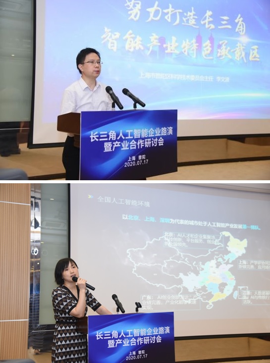 为更好地贯彻落实长三角一体化发展国家战略,促进长三角人工智能产业高质量发展,推动区域产学研合作,形成有一定规模、成长性高、引领性强的人工智能及机器人集群建设,全方面打造长三角地区人工智能产业合作交流平台,7月17日,长三角人工智能企业路演暨产业合作研讨会在普陀区长征镇天地科技广场举办。